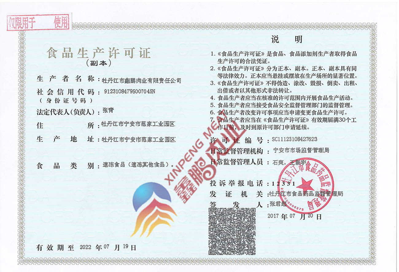 牡丹江市鑫鵬肉業(yè)有限責(zé)任公司